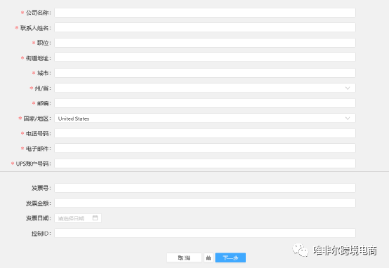UPS账号授权需要注意的是,如果该UPS账号以前打过单则需要去UPS后台获取最新的发票信息,将最新发票信息填写到页面上最后4个相关位置上。